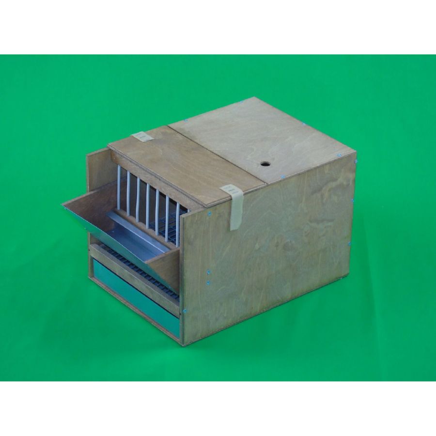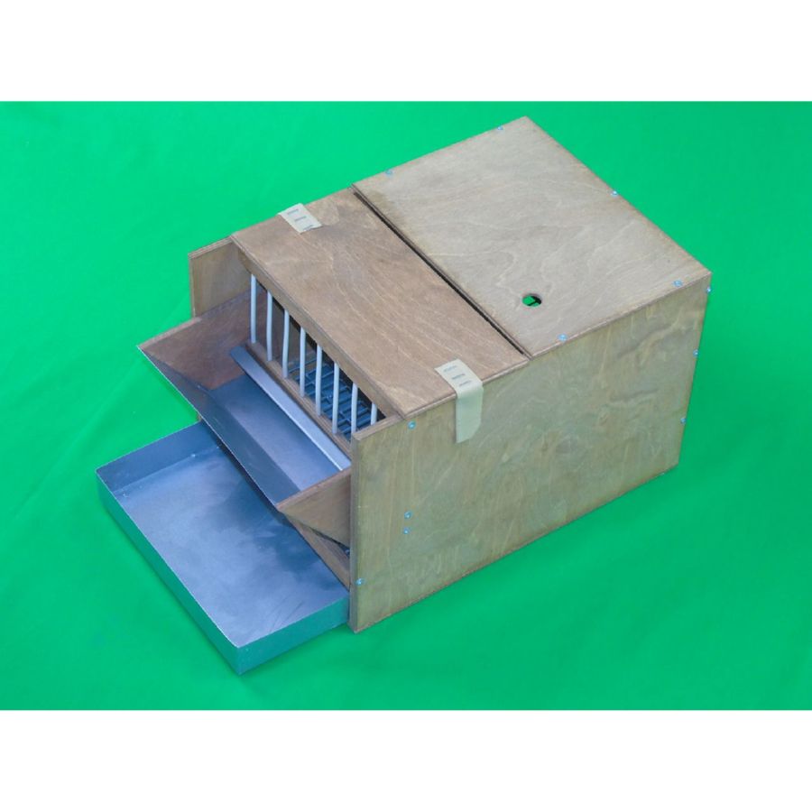 Изготовлен из влагостойкой фанеры Кормушка и поддон из оцинкованной стали