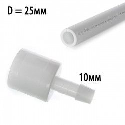Штуцер на трубу 25мм с выходом на 10мм, используется при построении систем ниппельного поения. Устанавливается на круглую трубу диаметром – 25 мм. Используется для перевода от жествого трубопровода на шланг для крепления чашечных поилок. Или наоборот - сначала система поения ведется через шланг 10мм, далее подключается к сборному комплекту поения например как комплект НП16 или комплект НП18.