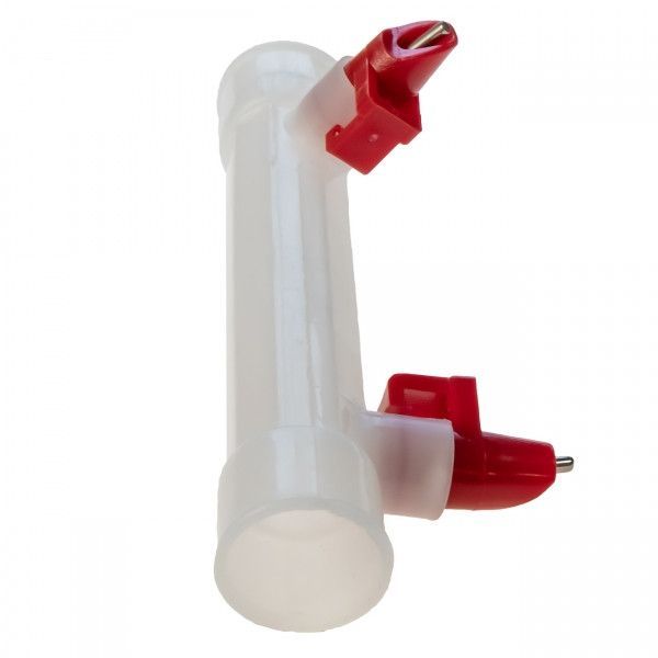 Ниппельная поилка НП30 предназначена для поения водоплавающих. Монтаж производится на трубу 25 мм. Ниппель имеет скошенную форму, за счет этого птице удобно из него пить. Нмппель вращается на 270 градусов. На поилке два ниппеля разнесенных под углом в разные стороны трубы. Позволяет нескольким крупным птицам подходить с разных сторон и не мешать друг другу при поении.