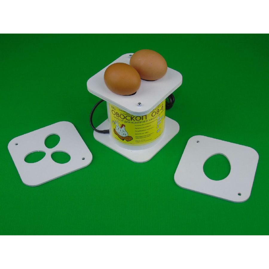 Овоскоп ОВ-6 одновременно может осуществлять проверку 2-х яиц. В дополнение к комплекту данного овоскопа есть возможность приобретения дополнительных решеток для проверки яиц других видов домашних птиц: крупных (типа гусиных, утиных, индюшиных) на 1 шт. и мелких (типа перепелиных) на 3 шт. Стоимость одной решетки - 5 руб.