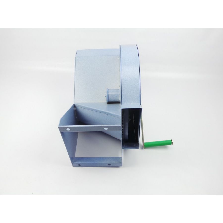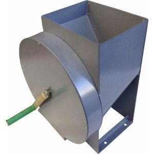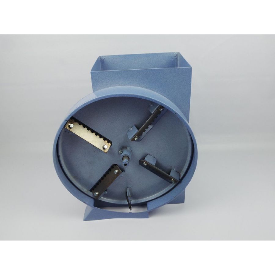 Корнеплоды загружаются в бункер, которые по наклонной плоскости попадают в зону резания. Вращая ручку по часовой стрелке измельчаем корнеплоды. Измельчённая фракция выпадает через горловину.