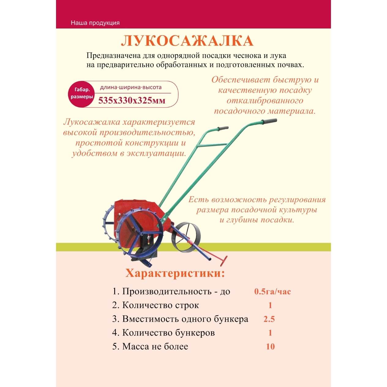Благодаря своей простой конструкции сеялка очень удобна в использовании и приводится в движение одним человеком.
