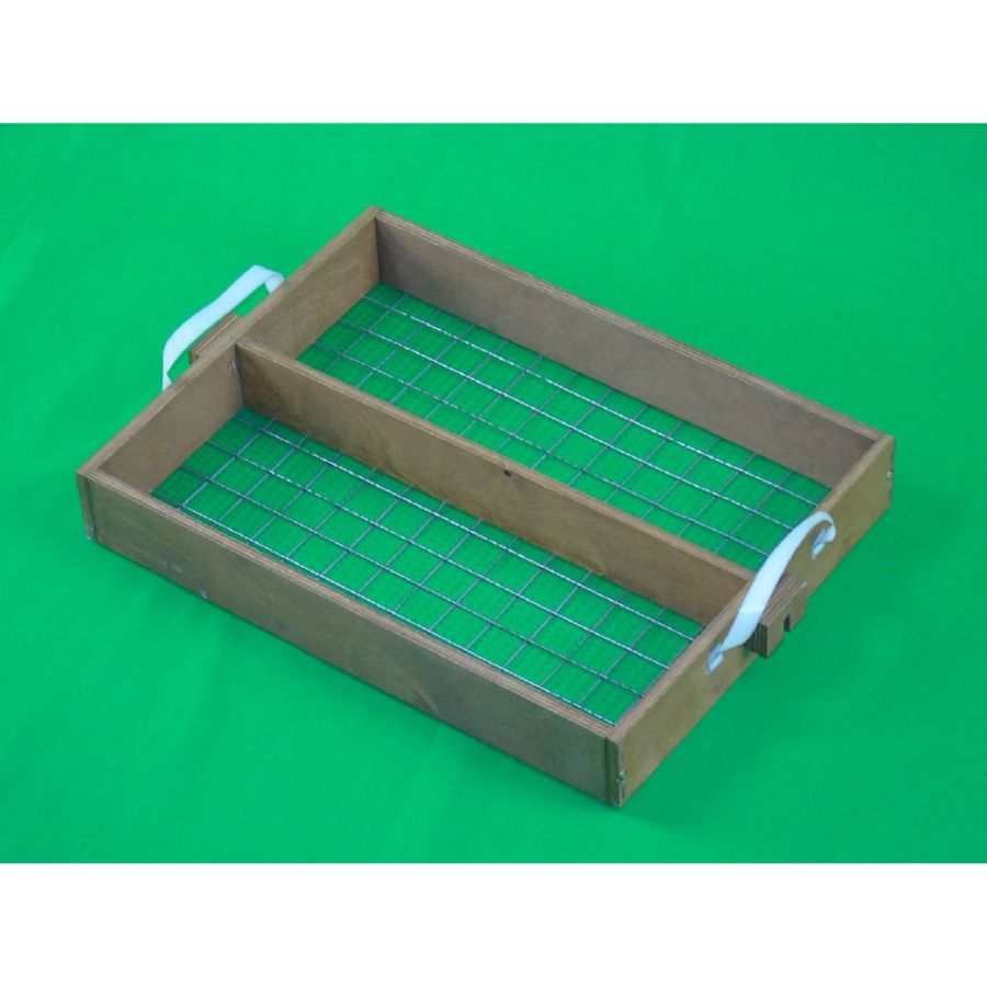 На нашем сайте Вы можете найти поддон для перепелиных яиц к модели инкубатора БЛИЦ-48, рассчитанный на 48 яиц, который отвечает всем современным требованиям. Он выполнен в виде деревянного каркаса с сетчатым основанием. Основание имеет два слоя: верхний представляет собой сетку с мелкой, а нижний с крупной ячейкой. Для удобства работы с ним к верхней части каркаса прикреплены надежные ручки.